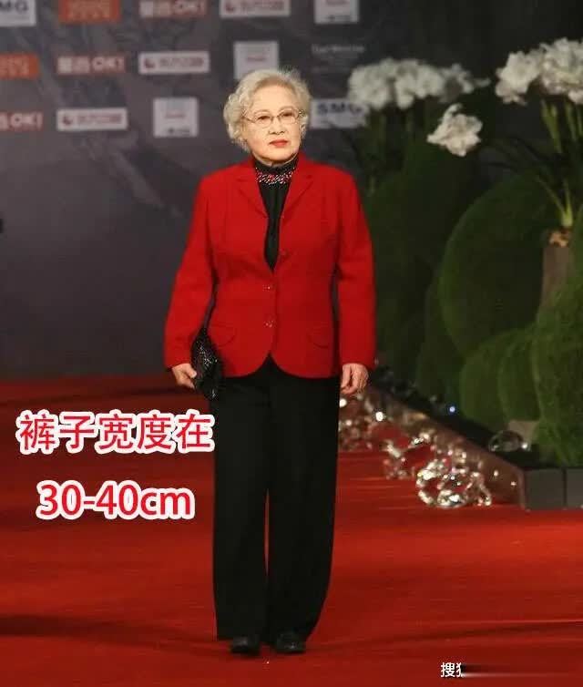 选裤子时,秦怡不选过宽的,选30 - 40cm左右宽度的,不显紧绷,有韵味,对腿短、腿粗的小个子是视觉显高的好搭档。